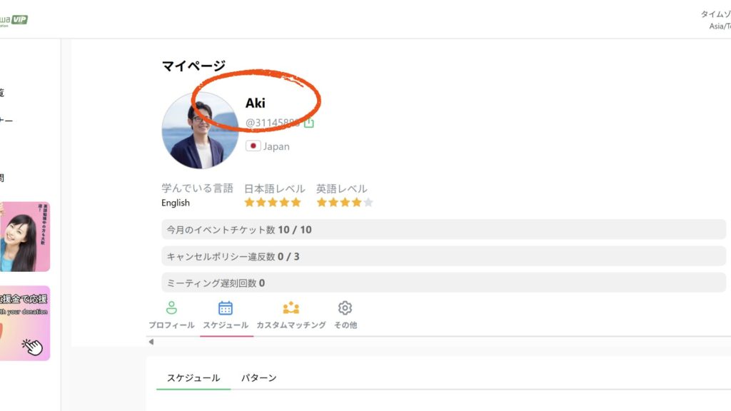 イベント会場での表示名とメンバーページで登録している名前を同じにしてください!