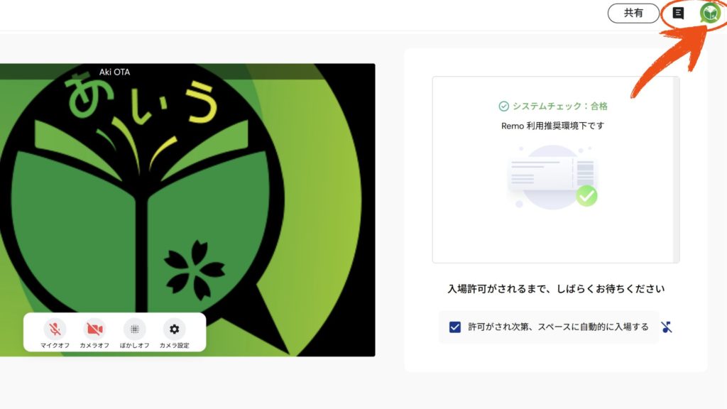 GoogleアカウントまたはFacebookアカウントでログインした場合はイベント会場での表示名を変更できますので、イベント会場に入る前のロビーまたはイベント会場に入室後に表示名をOhanasi Kagawaのメンバーページと同じものに変更してください。